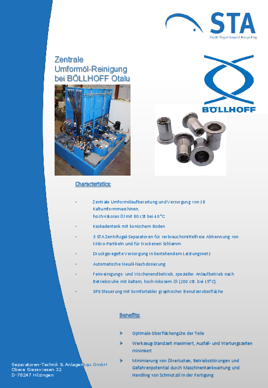 Zentrale Umformöl-Reinigung für Böllhoff Otalu Kaltumformen Erfahrungsbericht zur Aufbereitung von… Zurück Drahtziehen (Erfahrungsbericht NEXANS)