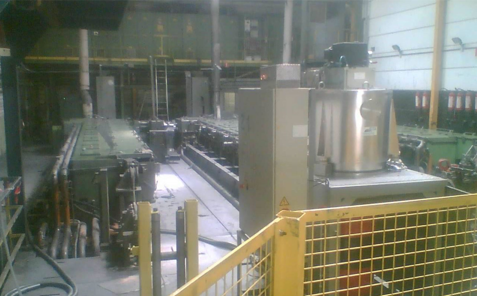 Nexans, a worldwide leader in cable production, runs a production site in Dour, Belgium, which manufactures medium and low-voltage cables as well as aerial cables. Its metallurgical department for copper and aluminium uses 3 NIEHOFF wire drawing lines, swaging wire ropes from +/- 8 mm down to 1 to 3 mm final diameter. In order to achieve the necessary cooling and lubrication the wire as well as the drawing dies is complete immerged in high viscosity oil. Each machine has a volume of around 3.000litres; the oil’s operating temperature is 35 °C. The swaging process causes significant abrasion of fine aluminium particles. Within a period of 8 to 12 months, depending on production load, the accumulation of solids in the oil increases up to 30 Vol.%. At that point the oil’s viscosity has gone up from 650 to over 1,000 cSt, so it needs to be replaced. Each oil change requires thorough cleaning of the machine and causes a significant loss of production capacity. The total of 9.000 litres of oil needs to be disposed as special waste. Due to the high viscosity and the very low particles size (between 1 and 20 μm), a standard filtration of the drawing oil would not be possible. Natural sedimentation would take several months due to the same reasons (see picture #1). In order to solve this problem Nexans have applied STA’ centrifugal separation technology. Tests with an STA trial system have shown that the particles are entirely removed, despite the high viscosity. The continuous cleaning in by-pass ensures an excellent purity on a steady level. The particles are separated as a solid sludge with almost no residual oil. These encouraging results have spurred the responsible people at Nexans to purchase one of STA’s centrifugal separators A-25 with automatic sludge removal, to be linked to all 3 drawing lines: The oil is pumped towards the separator following programmed sequence, which is adaptable to production’s requirements. When passing through the A-25’s rotor, the fluid gets accelerated by 2,000 times the earth gravity, making the fine particles settle on the inner drum wall and form a solid sludge layer. During the automatic regeneration sequence the rotor-mount scraper system removes the sludge, which then simply falls into a bin placed below the separator (see cross section sketch on picture #2). The purified oil is pumped straight back into the wire drawing machines.