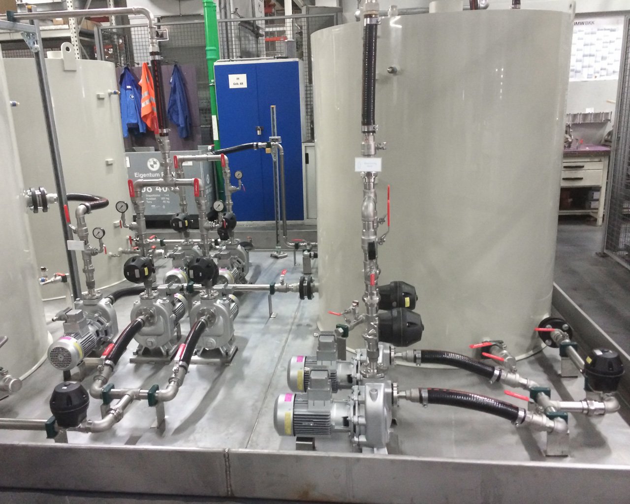 中央集中净化处理系统 针对于中央集中净化处理系统,比如净化和护理水性的冷却润滑液或者清洗乳化液和加工油,德史达会提供灵活的模块化整体解决方案。同时储液罐的容量和供液流量是根据工艺的要求单独设计的。除了液体清洁装置外,项目的范围通常还包括附加部件,比如:粗分离设备 (过滤器,磁性器等.)。提升泵站通过环性进行供液部分供液压力可达100 bar通过安装加热和冷却装置来调控液体温度调控集成药水补充装置和搅拌器杂油分离与生产设备进行数据交换,选配总线连接123