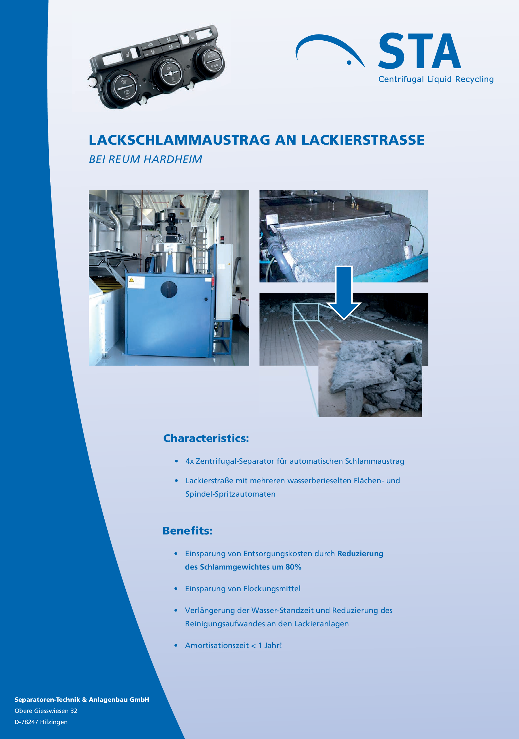 Lackschlammaustrag an Lackierstrasse bei Reum Hardheim Lackschlammaustrag Badpflege an Durchlauf-Vorbehandlung Back STA-Separator, Modell S-15